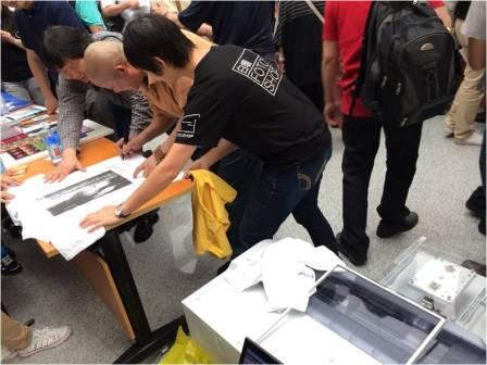 國際攝影大師楊延康老師在運源代理Epson F2080 T恤印花機打印的自己作品上簽名,并連連夸贊設備的優秀表現